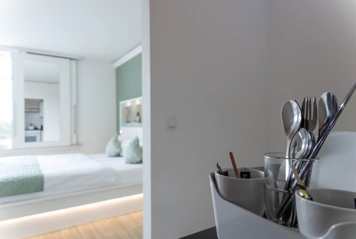 Die Einrichtung in unseren Appartement Plus ist simpel und